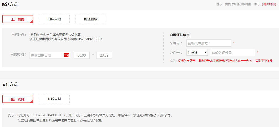 b、根据您的收货时间安排和实际情况,选择合适的配送方式、支付方式、配送时间;