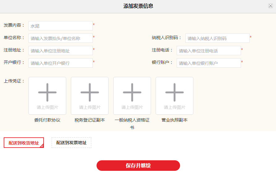a、如是第一次使用的收货地址,则填写上增加新的收货地址;
